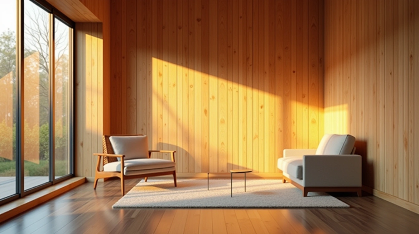 En hiver, la fibre de bois maintient la chaleur intérieure et réduit considérablement vos besoins de chauffage. En été, ses propriétés naturelles de déphasage thermique repoussent la chaleur extérieure pendant plusieurs heures, préservant la fraîcheur intérieure sans climatisation excessive.